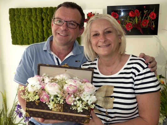 Après concertation sur le choix des fleurs en harmonie avec leur décoration intérieure , Franck et Patricia m'ont confié leur malle.... Pour avoir déjà eu l'opportunité de réaliser des compositions dans des superbes pièces "Lalique" ou vases de collection , la fébrilité et l'émotion qui m'ont animée durant la réalisation de ma composition ont dépassé tout ce que j'ai pu vivre en 21 ans d'expérience !...