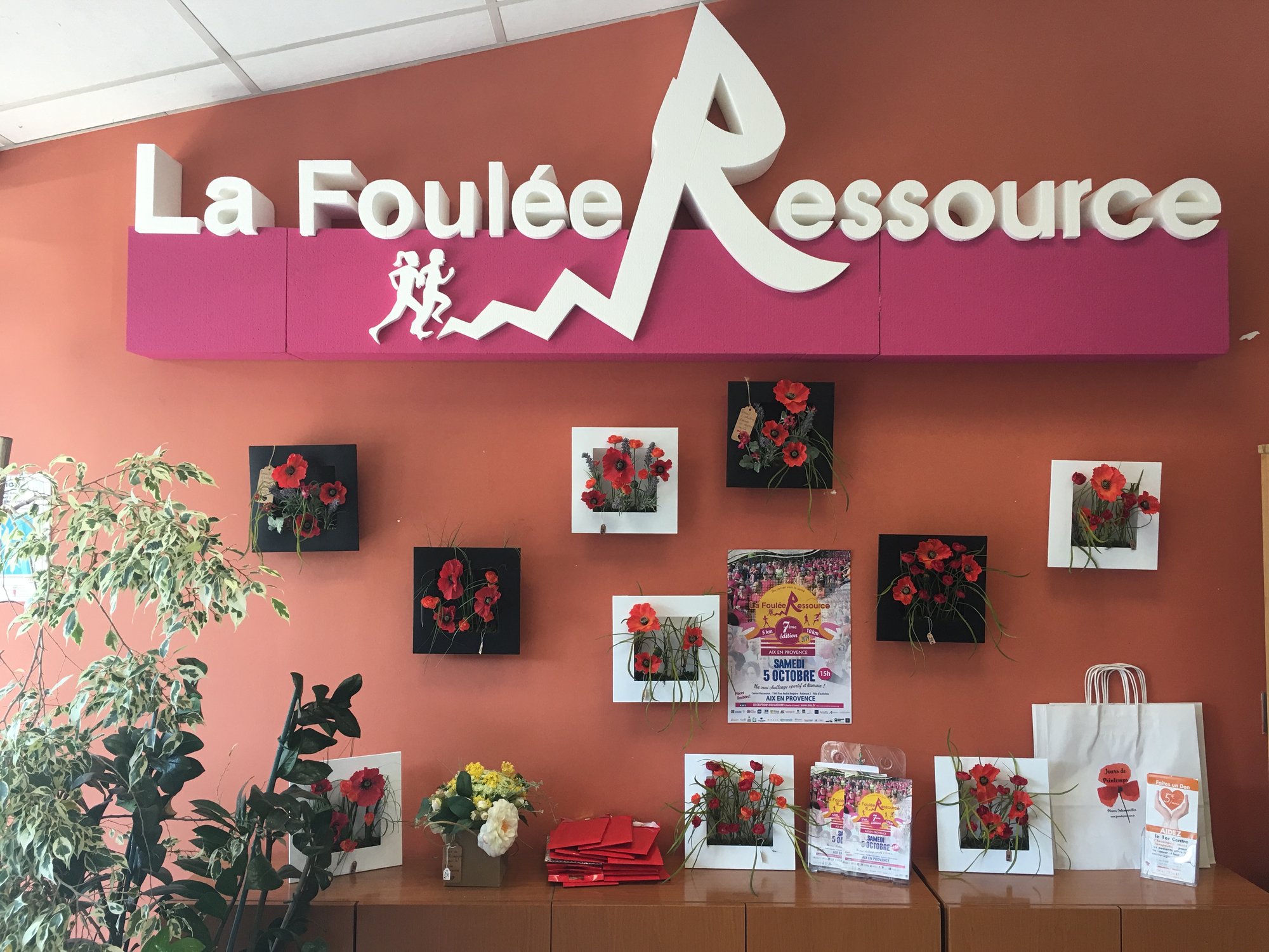de jolis cadres de coquelicots réalisés par les Adhérents et revendus au profit du Centre lors de la Foulée Ressource...